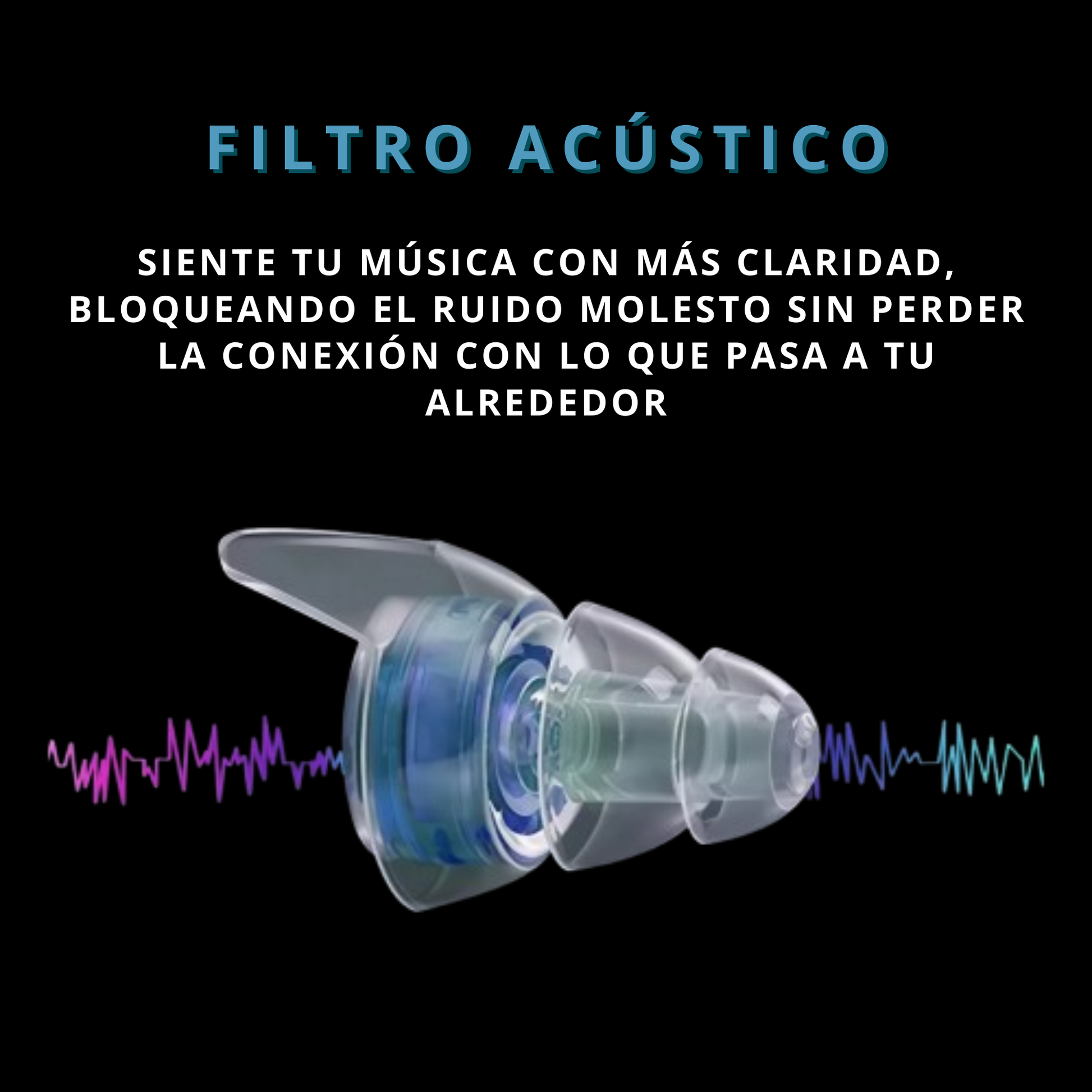 Gracias a su diseño de tres capas y un filtro acústico inteligente, VIBEPLUG bloquea el sonido ambiental, permitiéndote escuchar solo lo que importa. Fabricados con silicona médica flexible, son tan cómodos que olvidarás que los llevas puestos.